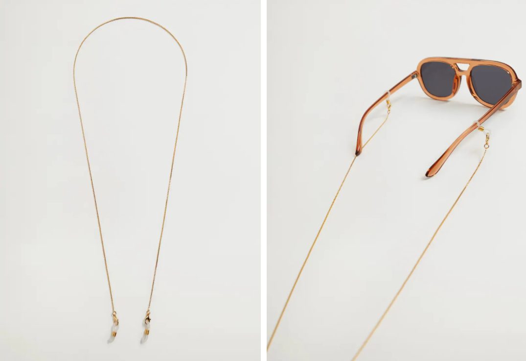 Uno de los productos que podemos adquirir en estos destacados de Mango por menos de 5 euros es esta cadena especial tanto para la mascarilla, uno de nuestros nuevos accesorios habituales, como para las gafas.