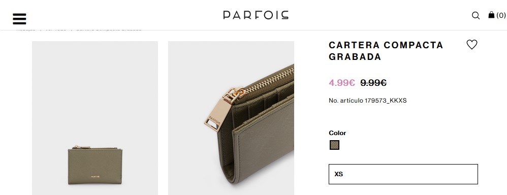 Es una hermosa cartera compacta que cuenta con un cierre de cremallera en la parte superior, inclusive tiene múltiples bolsillos. Además, cuenta con unas ranuras para guardar las tarjetas en todo momento. Cuenta con un hermoso diseño de la marca en la parte delantera para darle un toque elegante e increíble en su estilo. Son super cómodos de trasladar en todo momento por la elegancia y comodidad que permite, por lo que es otro de los productos más vendidos. Entonces, si estás buscando una hermosa cartera a un precio accesible solo debes entrar en Parfois por un precio de 4.99€.