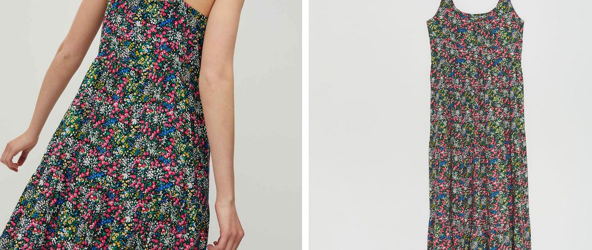 En las tiendas Sfera se han empeñado en que seas la más elegante del verano y encima no acabes con tu cuenta corriente. Por eso, traen este vestido largo estampado con vuelo que nos parece una monada. Como ves en la modelo de la imagen lleva tirantes ajustables para que te lo puedas poner a tu medida. Su precio es de 15,99 euros y se puede combinar con un calzado típico veraniego como son unas sandalias planas.