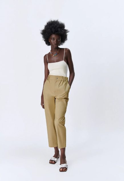 Lo encontrarás en la talla que se adapte a tu cuerpo, desde la XS hasta la XL. Elaborado en 100 % algodón, viene en un delicado khaki claro, muy fácil de combinar con lo que consigas en tu guardarropas. Debe ser lavado a baja temperatura y con centrifugado suave. Será tuyo en esta promoción de Zara por tan solo 12.99 euros.