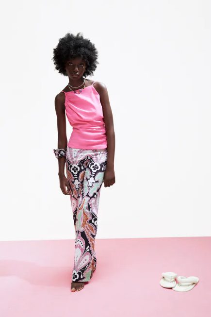 Date este gusto en el verano, flotaras con este pantalón que está confeccionado: 55% de lino y 45 % de algodón. Lo encontrarás en las tallas que desees, desde la XS hasta la Xl, en un espectacular multicolor que te hará lucir plenamente. En la promoción de las tiendas Zara en 17.99 euros.