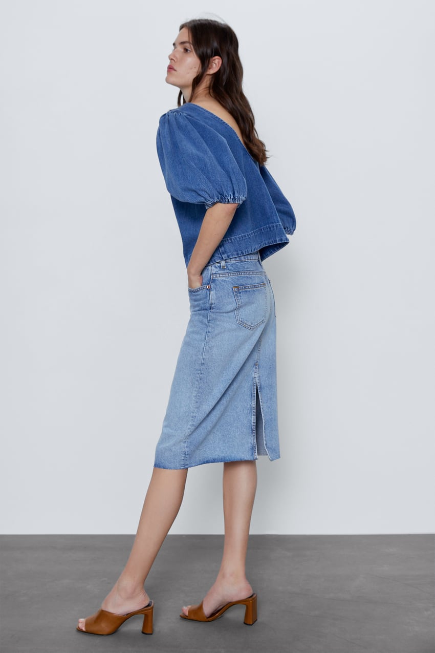 Como hemos dicho antes, otra de las tendencias de la temporada es la manga abullonada. Ese es uno de los efectos de esta blusa que Zara vende en sus tiendas por 15,99 euros. Queda perfecta con unos pantalones blancos como en la foto. Es una apuesta casual y divertida que encajará muy bien con el espíritu del verano. El escote en la espalda le da un punto de sensualidad muy chic en una prenda denim.