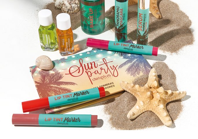 En verano, Mercadona no deja de pensar. La nueva colección de maquillaje Sun Party se inspira en los cálidos reflejos del sol. Esta colección, de edición limitada, rinde homenaje a la vitalidad, con una gama de colores que combinan a la perfección y que aportan grandes dosis de optimismo. Piel hidratada, uñas cuidadas, mirada luminosa y labios a todo color. Esta colección está compuesto por Make up fixer: fijador iluminador, Gel nutritivo y gel antioxidante para el tratamiento de tus uñas, Panoramic Máscara de pestañas y sérum de pestañas y Paleta de sombras e iluminadores.