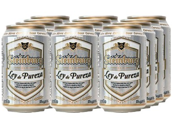 La cerveza Steingburg Ley de Pureza es una evolución de la cerveza Steinburg Clásica que tanto éxito ha tenido entre los consumidores de Mercadona. Se puede encontrar en formato de botellín de 250 cc y en latas de 330 cc.