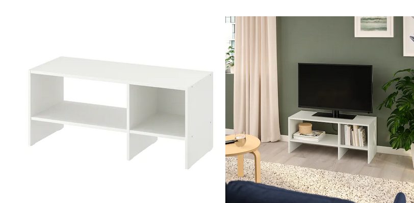 Este accesorio de Ikea se puede combinar con otros productos de la serie de almacenaje BAGGEBO para crear una solución completa y a juego con librerías, almacenaje oculto, armarios expositores y un mueble de TV. El panel superior del mueble de TV ha sido diseñado para resistir 20 kg como máximo. Y lo mejor de todo es que lo puedes tener en tu casa por solo 15 euros.