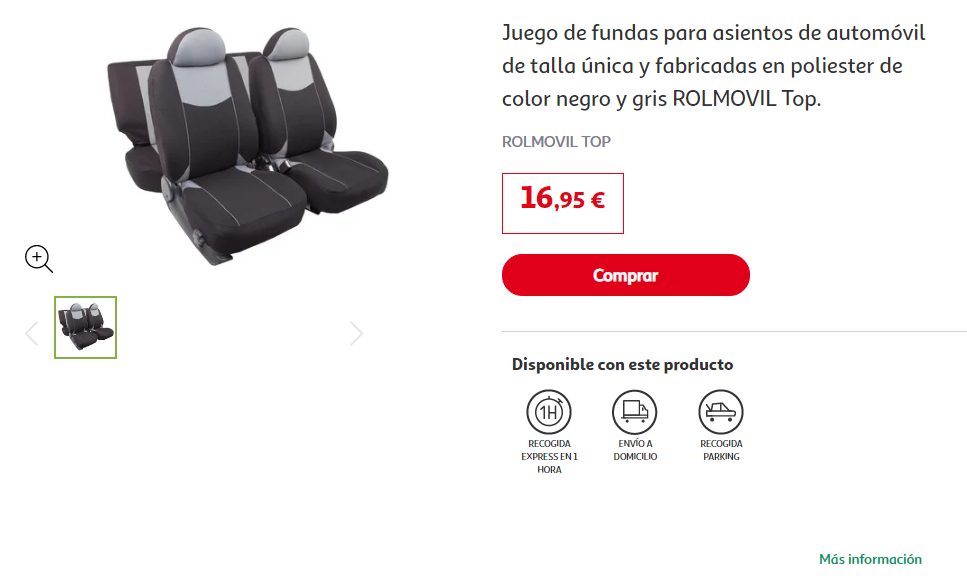 El juego está conformado por las dos fundas de los asientos delanteros, la funda para el asiento trasero y las dos para los apoya cabeza de la butacas delantera. Compatibles con los airbag laterales. No pierdas esta oferta, no creo que la vuelvan a repetir. Su precio es de 16.95 euros.