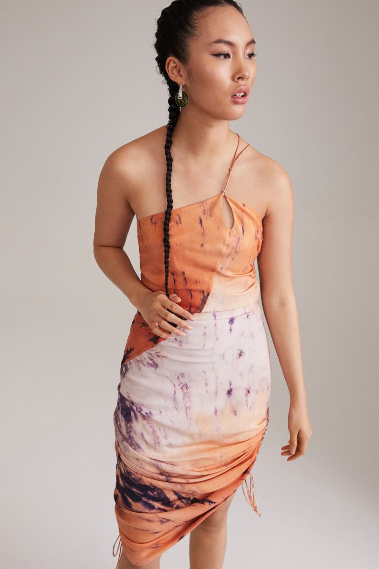 Es uno de los vestidos entallados que se puede conseguir por la plataforma H&M, que cuenta con un estampado que es imprimido mediante una técnica digital. Cuenta con un diseño de escote asimétrico con una sexi abertura pequeña, además tiene unos tirantes ultrafinos sobre la parte de un hombro. Inclusive, la parte de la espalda es descubierta con tiras de anudar finas ajustables en zigzag. Tiene un elástico completamente fruncido en ambos lados, cremallera completamente oculta en un lateral. Por lo que, es perfecto para que la mujer pueda lucir su hermoso cuerpo. Si lo deseas comprar solo debes entrar a H&M por un increíble precio de 58,99 €.
