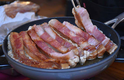 Como decimos, los torreznos de Soria exigen un cocinado lento. Se trata de que la corteza se vaya levantando y quede completamemte hinchada. El tiempo de cocción depende de muchas variables, especialmente de si hemos secado y oreado bien la panceta previamente. En todo caso, es raro que baje de media hora. Una vez en la sartén podemos echarle un vistazo de vez en cuando. Como se trata de una cocción con el fuego muy bajo es muy difícil que se nos queme. Una vez que la corteza se haya inflado, subimos el fuego y freímos el torrezno un minuto por cada lado, o hasta que estén doraditos.