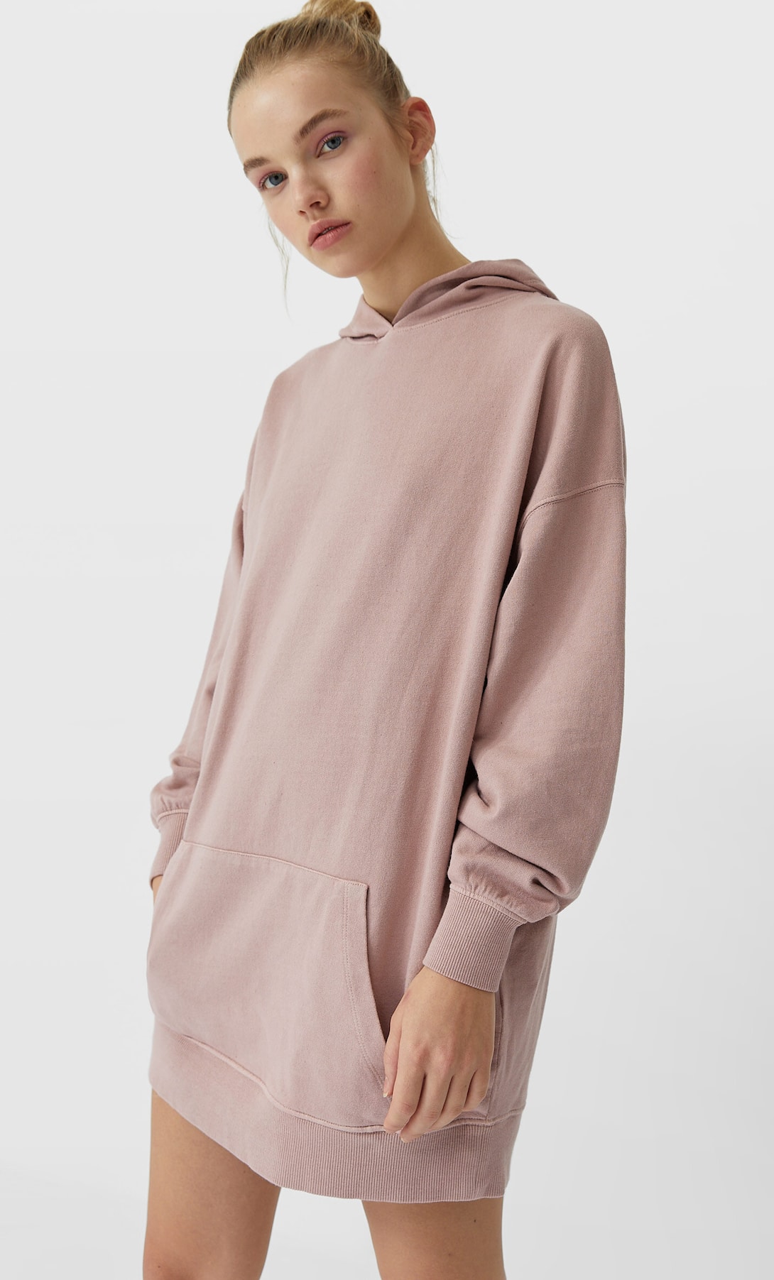 Una de las mejores que encontramos, también en Stradivarius, es este vestido-sudadera con capucha, muy cómodo para estar En nuestro hogar. Lo podemos elegir en rosa pastel o verde por tan solo 9,99 euros. Su precio anterior era de 19,99 euros.