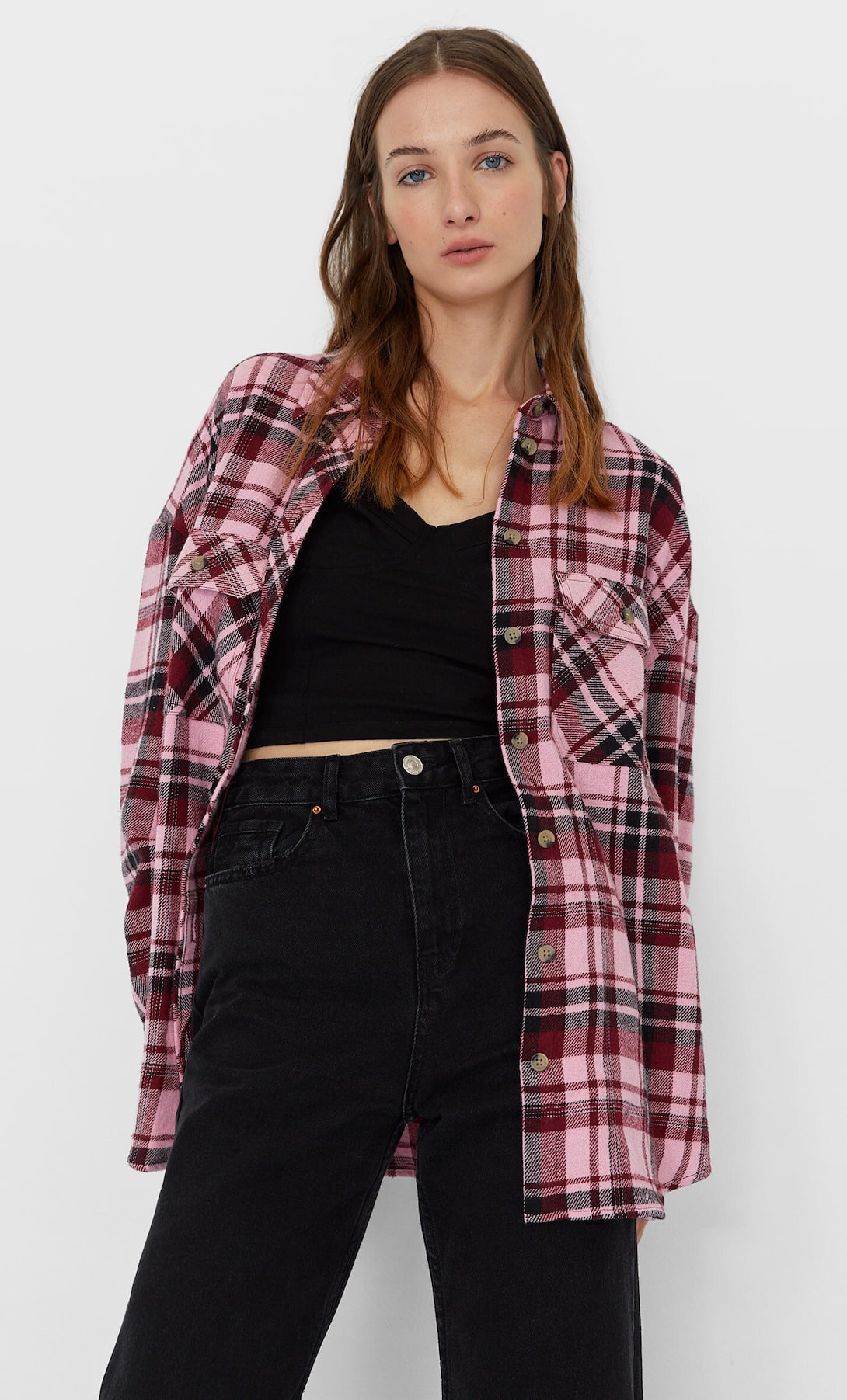 Otra prenda cómoda que podemos encontrar en Stradivarius es esta sobrecamisa de cuadros en una bonita combinación de tonos rosas. Además, si no eres demasiado amante de este color, tienes la posibilidad de elegirla en muchos otros más.