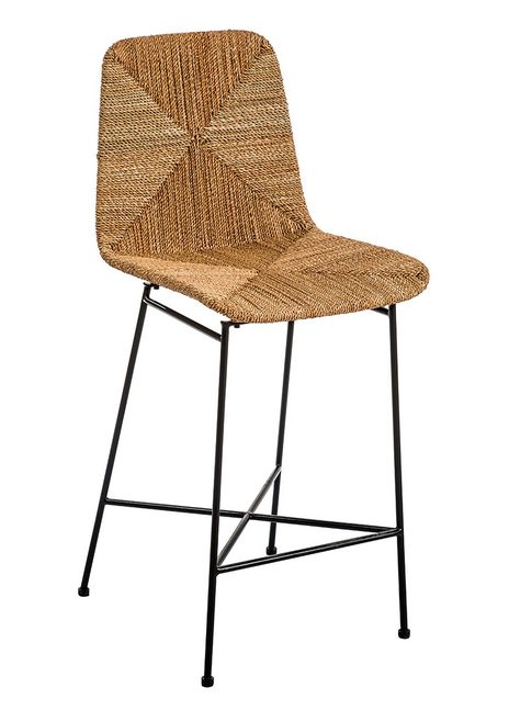 Si te gustan las fibras naturales, este taburete le dará un aire muy acogedor a tu cocina. Es de diseño alto, con una estructura metálica muy resistente y un asiento y respaldo de fibra natural trenzada. Tiene un aspecto moderno con un ligero toque rústico que se adapta a todos los ambientes. La pieza es muy estable debido a su peso. Para quitar el polvo de las fibras se recomienda usar una brocha o un aspirador, y a continuación limpiar con agua jabonosa. El precio de este bonito taburete de El Corte Inglés es de 149€. Este es el link.