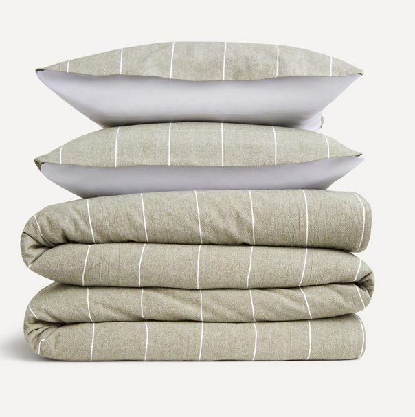 Se acerca el momento de cambiar la colcha de verano por el nórdico, así que podemos aprovechar para hacernos con una nueva funda y darle un nuevo aire al dormitorio. En El Corte Inglés puedes hacerte con este conjunto fabricado en 100% algodón, con un diseño liso y suaves franjas blancas, con 180 hilos que se han teñido antes de tejerse, por lo que se mantienen las propiedades naturales de flexibilidad y transpirabilidad. Está disponible en tonos azul, gris, verde y mostaza, e incluye 1 funda nórdica y 1 de almohada, o 2 fundas en los modelos a partir de 105 cm. Tiene un cierre con botones. Tiene un precio desde 45,95 € y lo puedes comprar en este enlace.