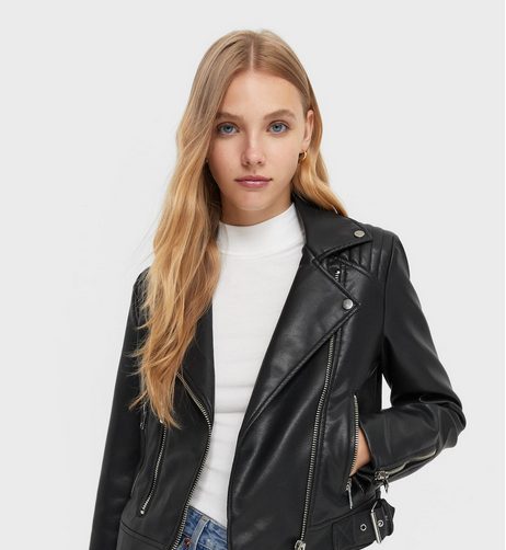 Dentro de los modelos de chaquetas que tenemos en Stradivarius, de la que dicen que copia a Zara, tenemos las bikers, es decir, de piel. Una de las que más nos ha gustado es esta cazadora de cuello y solapa con manga larga. Tiene bolsillos delanteros con cremallera metálica y un detalle de trabillas en bajo. Además viene con cierre frontal con cremallera metálica. Su precio es de 29.99 euros, pero vente a la velocidad de la moto porque subirá de precio.