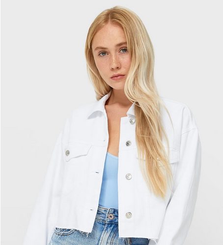 Date prisa porque un denim, chaqueta tejana, por 25.99 euros de esta calidad no se ve todos los días. En este caso una chaqueta corta tejana, manga larga con puños abotonados y cuello solapa y que viene con dos bolsillos de pecho con solapa. Eso sí, solo está disponible en color blanco. Una de las prendas más elegantes para lucir este otoño cuando sales a tomar algo con el grupo de amigos.