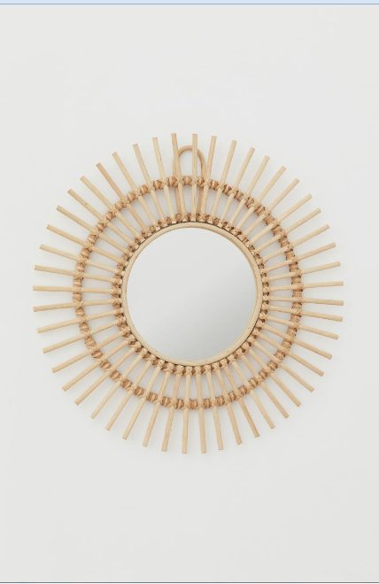 En cualquier parte del hogar, siempre queda bien un espejo, el que trajeron las tiendas H&M Home, viene en marco de mimbre, lo cual le da vistosidad. Es redondo y su marco está elaborado totalmente a mano. La argolla para colgarlo del mismo material que el marco del espejo.