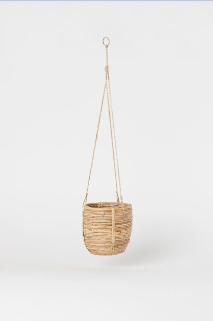 Las tiendas H&M Home traen un vistoso y delicado matero colgante de ratán, que adicional a utilizarlo como matero, podrás darle variados usos y de igual forma adornará tu hogar.