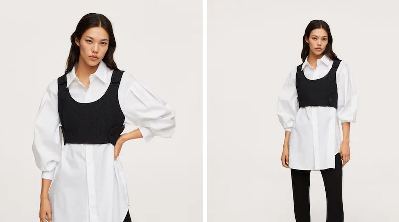 Septiembre es un mes traicionero. Igual que nos hace bueno nos hace malo. Así que de momento en el armario vamos a tener un top de tirantes anchos que podemos acompañar con una camisa. Con unos tirantes con cierre de botón y con cuello redondo. La prenda lleva forro interior con diseño recto. Cierre de botones laterales y tejido de algodón. Con textura, diseño crop y sin mangas. Y sí, muy barato: solo 19.99 euros.