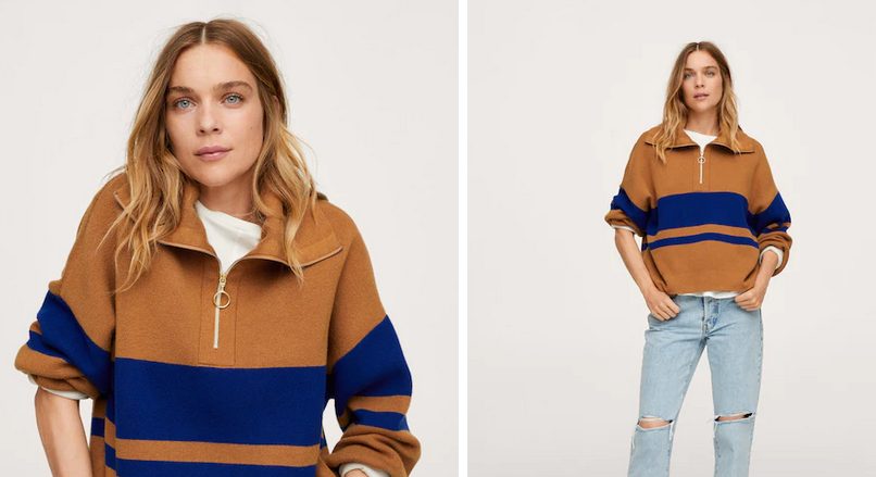 Cuando pasa el verano hay una prenda que siempre tenemos que llevar el jersey. Es ideal para esas noches de 10 grados en los que comenzamos a sentir calorcete. En este caso es un diseño oversize con costura del hombro caída. Es de un tejido de punto fino y cuello alto cremallera con Manga larga. Por 39.99 euros puedes tener una prenda perfecta.