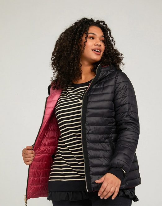 Seguimos con las tallas grandes, esta vez enfocándonos más a las bajas temperaturas. Siempre es buena idea comenzar a prepararse ya aprovechado las ofertas de otras temporadas, como es el caso de este plumífero, una prenda de abrigo que siempre está de actualidad. Es de la marca Fiorella Rubino y es reversible, negro por fuera y rosa fucsia por dentro, por lo que podemos tener dos prendas en una. Tiene cierre con cremallera, bolsillos diagonales también con cremallera, capucha y un mullido y ligero relleno de guata. Con el 70% de descuento se queda en 38€. Un chollo que puedes comprar aquí.