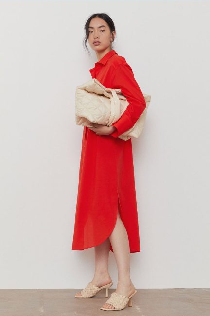 Tienes un compromiso que no estaba planeado y estás indecisa en que llevar puesto. El vestido camisero que traen las tiendas H&M, será la prenda ideal para esa ocasión. De tamaño midi con cuello, botones en su parte delantera y puños anchos. Con vistosas mangas largas, con abertura y bajo redondeado.
