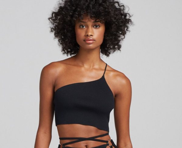 Todavía estamos a tiempo de lucir ese cuerpo de gimnasio que hemos cultivado durante los últimos meses, y lo podemos hacer de sobra con este top asimétrico de Bershka. Como puedes ver a la modelo, es una prenda atrevida que tienes en colores negro y rosa. Y lo del precio es de locura, porque tras el descuento del 40%, lo puedes conseguir por solo 5,99 euros. ¿Puedes encontrar algo igual en Stradivarius?