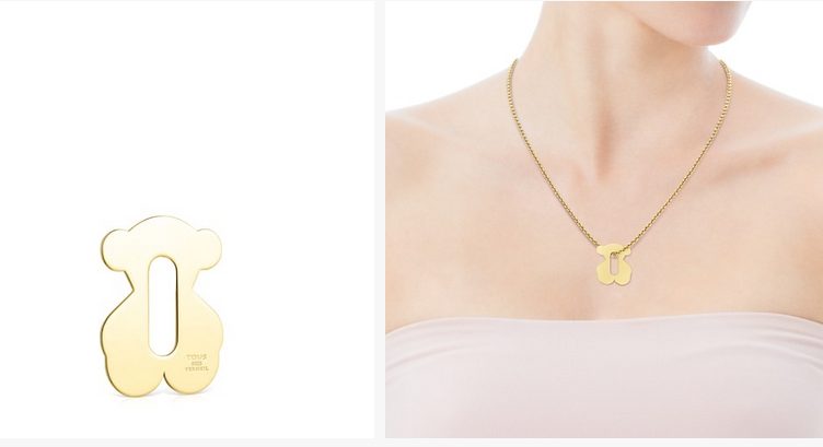 Si hay algo característico de Tous es su famoso osito. En cuanto se ve, ya sabemos que lucimos una joya de calidad. Pues bien, una buena elección por solo 30 euros es este colgante pequeño TOUS Hold Metal oso de plata vermeil. El tamaño del colgante es de 2,25 cm. Plata de primera ley recubierta de oro de 18kt con un espesor de 3 a 5 micras y sin ningún otro metal entre ambos. Atención porque este artículo no incluye la cadena.