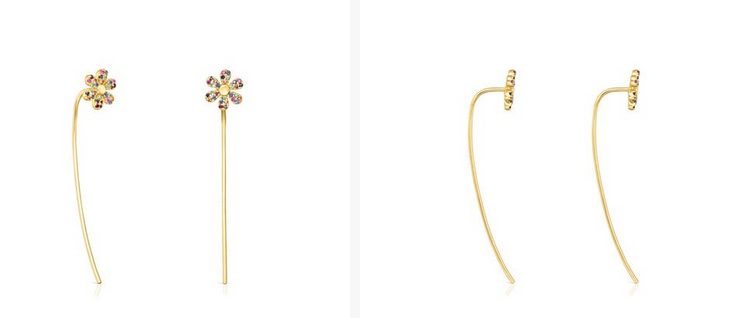 Estas próximas semanas puedes lucir en tus orejas unos pendientes de Tous de mucha calidad y elegancia. Son unos pendientes largos de Real Mix Bloom de plata vermeil con rubíes y zafiros multicolor y con cierre gancho. Es de Plata de primera ley recubierta de oro de 18kt con un espesor de 3 a 5 micras y sin ningún otro metal entre ambos. El precio es lo mejor porque viene con un 40% de descuento y se queda en 99 euros.