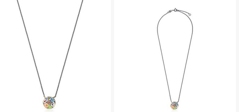 Un collar de TOUS puede ser tuyo por solo 59 euros. Como lo ves, viene con Minifiore disco de plata vermeil, dark silver y cristales de murano de colores. Es de Plata de primera ley recubierta de oro de 18kt con un espesor de 3 a 5 micras y sin ningún otro metal entre ambos. Plata de primera ley cubierta por un baño de rutenio, mineral que aporta robustez y brillo. Y con cristales de colores: Fusión de la plata con una fina lamina de cristal que da lugar a piezas que conservan los colores y el brillo de ambos materiales.