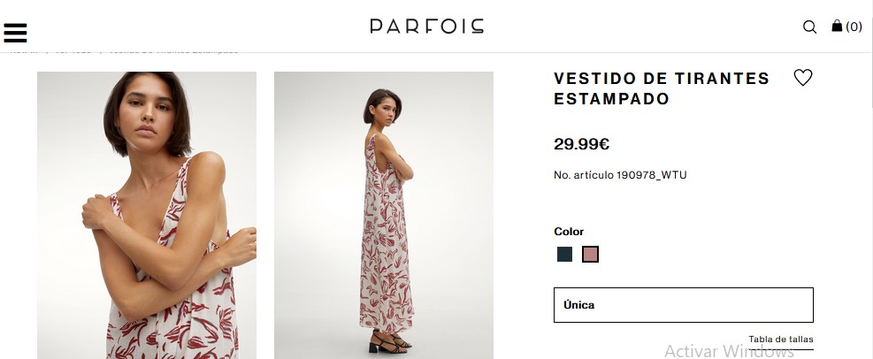Es un vestido que está fabricado con un 80% de viscosa, 20% de poliamida por lo que es perfecto para usar en esta temporada. Dado que, genera una gran frescura a las mujeres que lo vayan a usar. Siendo una de las razones por la que se ha convertido uno de los principales productos adquiridos cuando entrar a la plataforma. Además, cuenta con un hermoso diseño de estampado por toda la parte delantera del vestido. Entonces, si lo deseas obtener este hermoso vestido solo debes entrar a Parfois por un precio increíble de 29.99€.