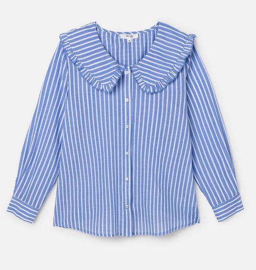 ¿Eres fan de las camisas de rayas? Ahora puedes incluir esta a tu colección porque seguro que no se parece a ninguna de las que tienes. Esta es especial, gracias su bonito cuello babydoll. Es de manga larga, con cierre de botones delanteros y un estampado de rayas clásico en azul y blanco. Se trata de una prenda muy femenina y en tendencia, increíblemente versátil para incluir en looks informales, con jeans, o para estilismos más formales y arreglados. Está tejida en 100% algodón y en El Corte Inglés tiene un precio de 29,99€. Aquí el enlace al producto.