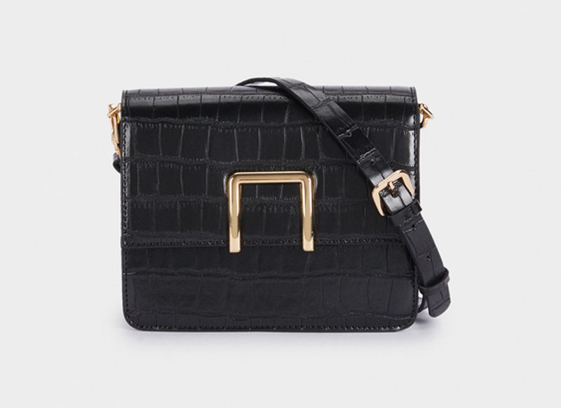 Es un bolso bandolera con grabado animal, el cual posee un asa bandolera ajustable y extraíble. Tiene un cierre de solapa metálico de imán, dos compartimentos y bolsillo exterior. Está fabricado en poliuretano y poliéster; tiene unas dimensiones de 20 x 16,5 x 8 cm, con una longitud de asa de 55 cm. Tiene un tipo de abertura zipper.