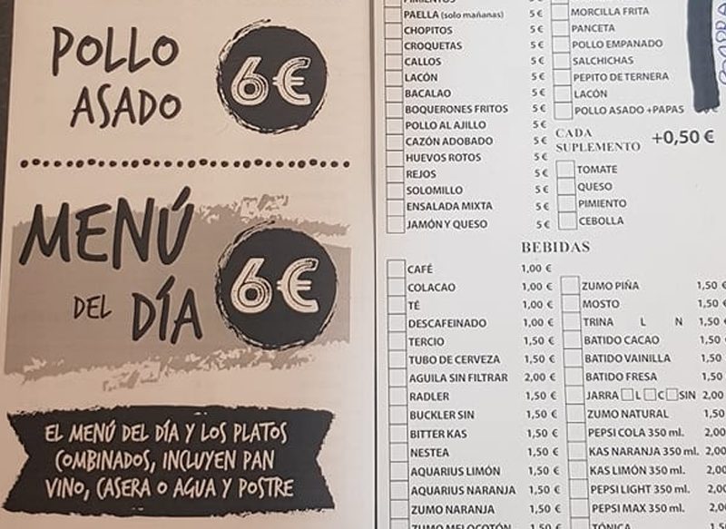 4UN MENÚ DEL DÍA POR SOLO 6 EUROS