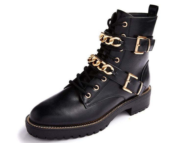 En el catálogo de productos de la conocida cadena irlandesa de ropa y complementos hay modelos de botas para todos los gustos. Estas botas de suela gruesa y cadenas en dorado de Primark son una opción muy a tener en cuenta para quienes buscan un calzado más desenfadado y casual.