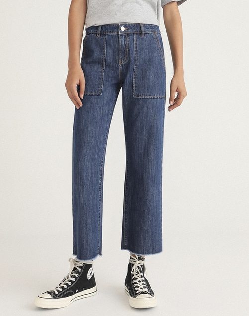 Esta temporada los vaqueros anchos van a tener mucho protagonismo en lo que se refiere a moda denim. Los skinny han quedado atrás para dar paso a diseños más holgados y cómodos. Adelántate con estos pantalones en tendencia, en color azul oscuro, con los bajos cortados, cierre con botón y cremallera, trabillas en la cintura y un original detalle de bolsillos muy amplios. Es de algodón 100% y serán tus favoritos este otoño. Cuestan solamente 14€ en El Corte Inglés y te puedes hacer con un par en este link.