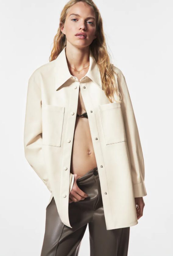 El efecto piel será otro de los más buscados en nuestras prendas de otoño y mucho más si llega en clave beige como esta sobrecamisa que ya tenemos disponible en las tiendas de Zara.