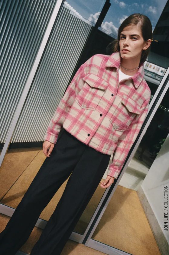 De cuadros rosas y tonos beige, con solapas y bolsillos, será ideal para combinarla con pantalón ancho o de tiro alto. Su precio, de 39,95 euros, es toda una oportunidad.