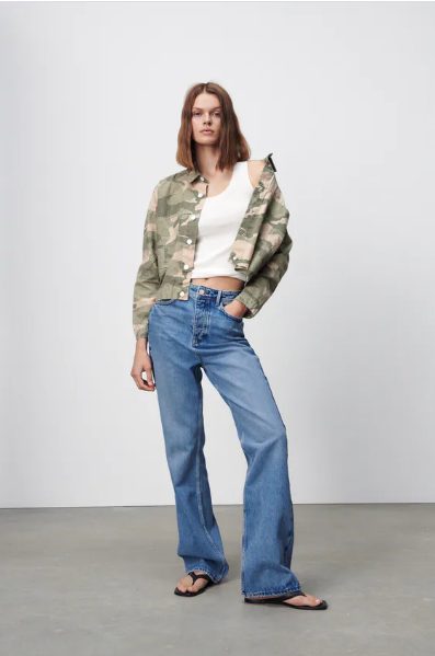 Si buscas una prenda casual, con la cual puedas ir sin problemas a tu oficina o a cualquier reunión de amigos. Las tiendas Zara traen esta Cazadora estampada, manga larga, con acabado elástico en la espalda.