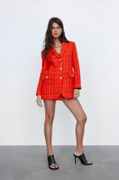 Con una falda donde destaquen tus piernas o unos elegantes pantalones que dejen lucir completamente toda tu elegancia. En un vistoso y elegante color naranja, en tallas XS hasta XXL, puedes llevártelo por 69.95 euros.