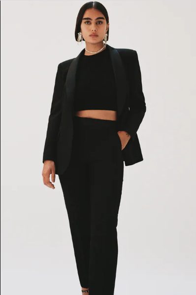 Una prenda única, deja que tu silueta resalte por completo con este blazer smoking. Con cuello en solapa satinada, hombros marcados, bolsillos delanteros con solapa.