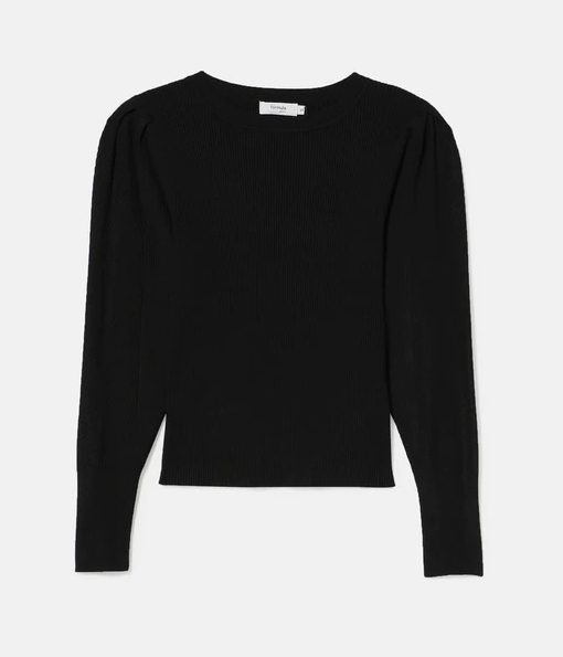 A veces es suficiente con jersey básico con algún detalle especial en él para conseguir un look estiloso. Esto lo puedes conseguir con este jersey de la marca Fórmula Joven, de cuello redondo con un detalle fruncido en los hombros que le da un toque femenino. Es de color negro, muy versátil y elegante, para combinarlo con todos tus looks, joyas y complementos. Está fabricado en 72% viscosa y 28% poliéster y tiene un 73% de descuento, por lo que su precio actual en El Corte Inglés es de 7,99€. Te dejamos aquí el link.