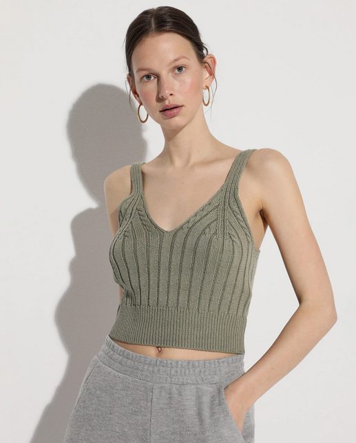 El otoño es la época ideal para combinar prendas de distintas temporadas, y el resultado puede ser muy estiloso. Incluye en tus looks otoñales un top crop como este de Easy Wear, con un bonito punto de canalé de ochos. Es de tirantes y relieve con canalé en distintos grosores y ochos, fabricado en tejido acrílico de color kaki. Utilízalo debajo de una chaqueta, una americana, o como más te guste. En El Corte Inglés tiene un descuento del 70% y cuesta solo 3,89€. Este es el link directo.