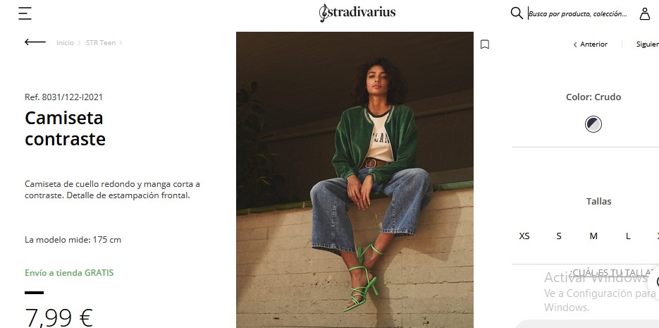 Es una hermosa camiseta de cuello redondo y cuenta con unas mangas cortas a contraste. Estas tienen unos detalles de estampación frontal, por lo que son hermosas para este otoño. Siendo unas de las preferidas por las mujeres cuando entran a la plataforma. Además, es una camiseta que es fabricada al 100% algodón, por lo que se debe lavar a máquina con una temperatura a 30 grados. No deben usar lejía ni blanqueador, y se debe planchar a una temperatura máxima de 110 grados. Si la deseas comprar solo debes entrar a Stradivarius a un precio accesible de 7,99 €.