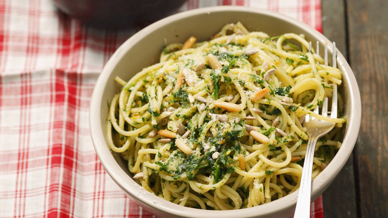 Los espaguetis cuentan con energía para ayudarnos a afrontar mejor el día a día. Si a este plato ya de por sí energético le añadimos algunos productos, como los frutos secos, el resultado puede ser todavía mejor.