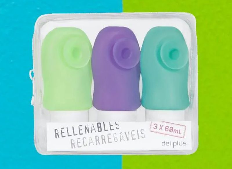 Una de las novedades que Mercadona ha incorporado a sus tiendas en el mes de septiembre son sus envases de silicona rellenables Deliplus. Son una excelente opción para utilizar en cualquier viaje.
