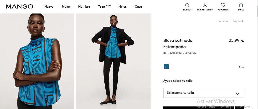 Esta blusa cuenta con un tejido satinado y fluido, inclusive tiene un diseño estampado. Siendo el estampado geométrico, y un diseño recto. Además, es perfecta porque tiene un cuello alto y sin mangas. Para darle un toque cuenta con un lazo en el cuello y cierre de botón en la parte del cuello. Entonces, si deseas comprar esta blusa solo debes entrar a Mango por un precio de 25,99 €.