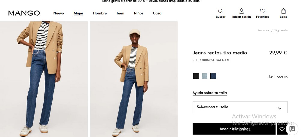 Es un jean complemente recto y estos tejidos en algodón, e inclusive es de diseño largo. Por lo que, es perfecto para usar en cualquier lugar como es el caso de reuniones como fiestas, familiares. Este cuenta con cincos bolsillos, unas trabillas y un cierre de cremallera para darle un toque más elegante. Inclusive, en la parte delantera tiene un botón para darle un toque más elegante. Entonces, si deseas comprar este jean solo debes entrar a Mango a un precio de 29,99 €.