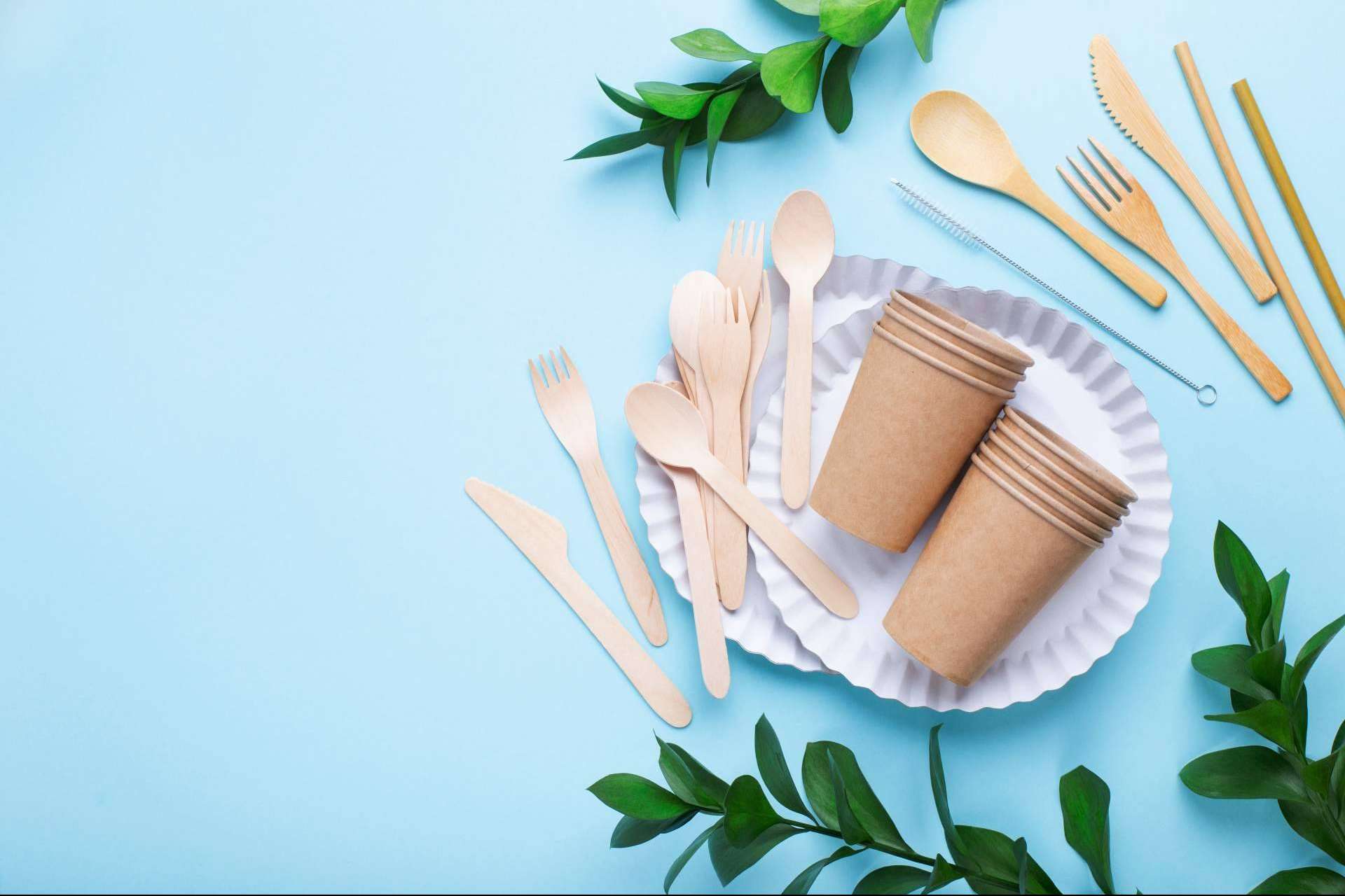 Disponer de todo el menaje de una fiesta con productos que no contaminan el ambiente es un buen acto a favor del planeta. Entre el menaje indispensable para organizar una celebración, Ecofiesta ofrece los vasos de cartón efecto kraft, cubiertos compostables hechos con pasta de maíz; así como platos y bowls elaborados con caña de azúcar y aptos para su uso en microondas.