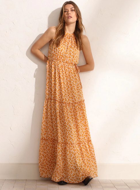 Otra prenda rebajada en El Corte Inglés es este vestido de la marca Tintoretto, largo con un favorecedor cuello halter y con vuelo en forma de volantes. Lleva una lazada a la cintura en el mismo tono y tiene un estampado en color naranja, que encaja muy bien con el espíritu otoñal. Aunque se trata de un vestido ligero ideal para el verano, se puede seguir utilizando unas cuantas semanas más antes que llegue el frío, ya que es versátil y se puede combinar con prendas de abrigo. Con el descuento del 70% el precio se queda en 44,99€. Este es el enlace.