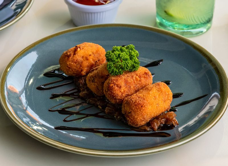 En lo que respecta al rebozado, debe constar de tres capas (pan rallado fino o harina, huevo batido y pan rallado grueso) y uniforme. Así conseguirás un rebozado extracrujiente en tus croquetas.