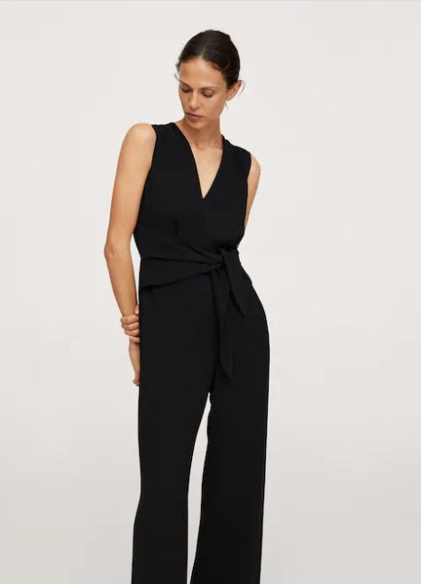 Para comenzar el otoño, el mono cruzado que traen las tiendas Mango es especial para la dama que la elegancia siempre lleva por delante. En tejido fluido, diseño wideleg, largo, con escote pico y sin mangas.